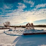 The 30 m² Galerie-Studio Im Gruenen Mit Fruehstueck Im Hotel Reindahls Wilkendorf offers proximity to such tourist attractions as Dorfkirche Wilkendorf, situated approximately 5 minutes' walk away. Wi-Fi and private parking are also available at this apartment.